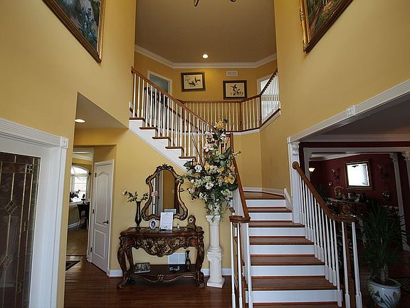 You will enjoy the lifestyle of this 5 bedroom, 4.5 bath Custom home in Golf Club build by the Mignatti Builders. Sophisticated Augusta model floor plan which has all of the upgrades you will appreciate with exceptional quality construction! The attention to details: Perfectly situated on a private lot with wonderful views from every window. Upon entering, you will be captivated by the open floor plan with many amazing architectural features. Augusta model has a two-story foyer and the elegant dining and living rooms w/crown moldings and circle-top windows for entertaining. The expansive Gourmet Kitchen will please your resident chef, with maple cabinetry, granite counters, GE Profile stainless steel appliances and every imaginable storage organizers! Dine casually in the sun-drenched breakfast room, overlooking your roomy maintenance-free deck. Unwind in the stunning family room with gas fireplace, wall of windows. Master suite with spa-like bathroom and his and her walk-in closets, 3 more over-sized bedrooms, each with walk-in closet, crown moldings and ceiling fan. The large upgraded tiles and exterior window is sure to suit your needs. A roomy loft with double windows is perfect for your study or library. Expansive 9 foot finished walk up basement with media room, exercise room, full bathroom and huge recreation area. Association maintains your lawn! No more need for a snow blower since the association handles this too. Two Honeywell House Humidifiers ensure comfort. Enjoy carefree living at its best!
