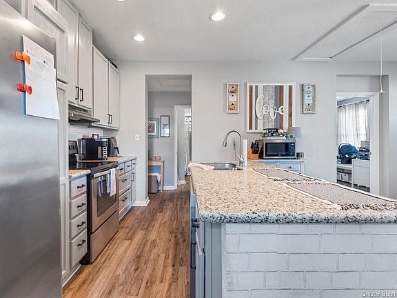 This adorable cottage style home in Moss Bluff is a MUST SEE! Completely remodeled in 2019 with updated color scheme, granite counter tops, stainless appliances, all new cabinetry with matching stainless hardware, neutral ceiling fans, and vinyl wood plank flooring throughout. Open living and kitchen area provides ample room for entertaining guest or hanging out. 3 bedrooms and 1 bathroom. The bathroom renovation brought in a new bathtub/shower and granite vanity. Fully privacy fenced back yard with covered deck/patio. Flood zone X so no flood insurance should be required PLUS this home should qualify for both FHA and Rural Development financing! Just minutes from 171 and close to town for shopping, schools, and restaurants! All measurements are m/l.