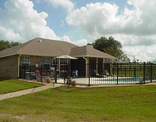 As you enter the small quaint town of DeLeon Springs, you past by beautiful horse country. (Home to Spring Garden Ranch) This custom brick home is located on 2.5 acres of great pasture with mature oak trees. What a beautiful setting. This property backs up to a Equestrian facility. This brick home has ceramic tile throughout, split bedroom plan, solid Oak cabinets with solid surface counters and stainless steel appliances. Great shaded screen room looks out over a beautiful in-ground pool with a salt water filter system and a maintance free aluminum fence. Vaulted ceilings, plants shelves, solid wood 6 panel doors, brick fireplace, inviting foyer, tray ceiling in master bedroom, inside utility and attached two car garage are just some of the upgrades on this home. Besides the attached two car garage, there is a 44x24 garage/workshop with a 30 amp outlet for RV hookup and with two garage doors 16' each, plus a barn with two three paddock areas, and this property is fenced and cross-fenced with different pasture areas. Besides the outbuilding and the barn there is also a detached metal building for additional storage. This beautiful home has something for everyone including a new roof.
