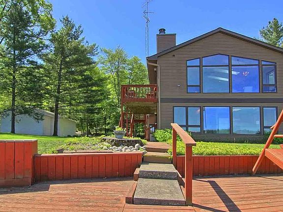Absolutely gorgeous home on Rennie Lake! Two floors of living. Spacious rooms, large deck, skylights, beautifully maintained lawn. Expansive windows with panoramic views of the lake. Open floor plan perfect for entertaining.Multi-level decking and mature trees. 30 x 45 detached pole building which is finished, heated and includes a rec room with fireplace and 1/2 bath! Tons of storage for all your toys. Not too late to enjoy your summer on the lake!