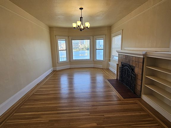 Grand penthouse unit on the 3rd floor of an 8 unit apartment directly across the street from Lake Merritt! Gorgeous hardwood floors, wood burning fireplace with built-ins in the living room and dining room. Black and white checkerboard tiles in the kitchen with quartz countertops, gas stove, and dishwasher! Bedroom found in the back with spacious closets in the bedroom and dining. Found on a cul-de-sac portion of the lake and conveniently located close to shops and restaurants on Lakeshore, International, and easy access to downtown Bart. Open house Saturday, 9/6, from 11am-1pm. Easy to show during the weekdays because our office is right down the street! 1 year lease, owner pays for garbage and water, tenant pays for PG&E and cable/internet.