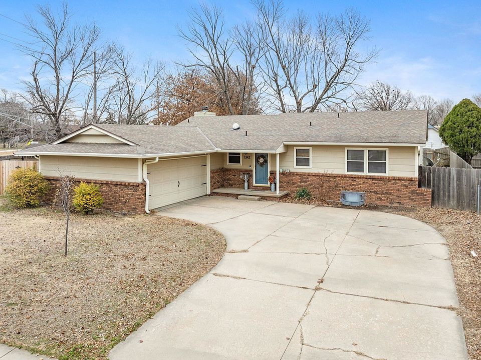 Discover this delightful 3 bedroom, 2 bathroom ranch style home with an attached 2 car garage. Perfectly located just a few blocks from Northwest High School, this well-maintained home offers a bright and inviting living space. The large living room features a picture window that bathes the space in natural light, complemented by built-in decorative cabinets. Hardwood floors flow through the dining room and kitchen, where you’ll find granite countertops, a stylish tile backsplash, and stainless-steel appliances. And don't miss the sun tunnel overhead! The dining area includes yet another built-in cabinet, as well as sliding glass doors that lead to a covered backyard patio, perfect for entertaining. A fully fenced backyard, mature trees, storage shed, and fire-pit complete the spacious outdoor space. The master suite boasts a walk-in closet, a stand-alone shower, and tiled floors in the en suite bath. Two additional generously sized bedrooms and a hall bathroom complete the main level. Downstairs, enjoy a spacious family room with a daylight window and a cozy wood-burning fireplace with an attractive brick surround. An additional large finished bonus room offers flexibility for use as an office, playroom, exercise space, craft room, or anything else you desire. A roughed-in third bathroom is ready for your finishing touches. Conveniently located near shopping, dining, schools, churches, and Sedgwick County Park, this charming ranch home offers comfort, convenience, and character. Schedule your showing today!