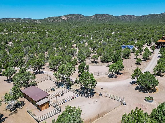 WELCOME HOME TO SOUTHERN UTAH! If you're dreaming of your own private slice of heaven, this extraordinary 40-acre furnished estate delivers. Nestled against both BLM and Forest Service land, it offers unrivaled off grid seclusion, panoramic mountain views, and a true sense of freedom-it's as if you own all of the mountains. Crafted with care and quality, the custom-built home features high-end finishes throughout and was designed to take full advantage of its breathtaking surroundings. Step out onto the expansive wraparound deck to soak in the scenery, or explore the impressive 3-car tandem garage with ADDITIONAL ATV pull-in storage beneath. Equestrian lovers and outdoor enthusiasts will be thrilled by the well maintained horse pasture(s), stalls, and round pen and direct access to endless trails for riding, hiking, and biking. From your backyard, you can hunt for mountain lions, deer, elk, and more-this is a true sportsman's paradise. Where sustainability meets luxury, this SOUTH FACING property boasts a fully owned, state-of-the-art solar power system with automatic controls to a whole home generator for peace of mind, a whole-home water filtering system, private spring-fed well for exceptionally pure water. Located just 8 miles from town and 5 miles from Enterprise Reservoir-ideal for kayaking, boating, and fishing-and only an hour from St. George or Cedar City. Zion National Park is a scenic 2-hour drive away, making this the perfect balance of seclusion and accessibility. Whether you're entertaining guests, building a homestead, or simply escaping the noise of city life, this one-of-a-kind mountain retreat offers the lifestyle you've been searching for. Buyer and Buyer's Agent to verify all information, including square footage and acreage, to their satisfaction. (see agent remarks for more items)