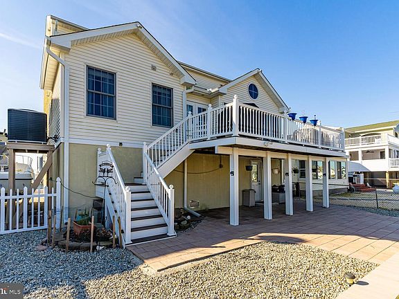 Raised and Renovated Waterfront Home. This precious gem features: 5 bedrooms and 2.5 baths and a multi-million dollar view from almost every room in the home. Wide lagoon, riparian rights, a brand new deck, vinyl bulkhead and whips for your boat, and a place for your jet skis. All beautifully paved and illuminated around the home into the attached garage. The interior has central and forced hot air, central alarmed with exterior cameras plus wood flooring throughout the house. The kitchen features, patio doors onto a large deck, beige porcelain flooring, granite counters with stainless steel appliances, a separate freezer, an eating bar, a gas stove, and an electric oven. The master bedroom is located on the main floor that includes a master bath with a jacuzzi tub, a walk-in closet, and a beautiful view from sunrise to sunset. This immaculate home sleeps 10 to 12 or provides office space versus a 5th bedroom on the main floor next to the half bath. The open bay is a 5-minute boat ride and a very short ride to the famous white beaches of LBI. Stroll to the restaurants, luncheonettes, bars, and exclusive shops which are diversified and cater to the most discerning client. A waterfront home has a unique atmosphere and provides a priceless lifestyle that cannot be matched by a non-waterfront home. This is your opportunity to transform into a healthier and happier person.