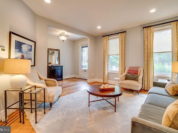 Come home to this gorgeous 1911 Wardman! This classic DC rowhouse retains tons of original charm (including inlaid hardwood floors, stairway, original front porch, which was replaced in 2018), but has been updated for modern living with central air (replaced in 2016/2017), and heat throughout, and gourmet kitchen (with gas range, dishwasher, disposal). The kitchen opens into the formal dining room for easy entertaining. Fully finished basement is the perfect hang-out space and includes a full bath, spacious laundry room, and tons of storage. Custom Roman shades on first floor. Upstairs are three bedrooms (one featuring access to the south-facing balcony), and pull-down steps that lead to the attic storage. Grow your own veggies and herbs in the back garden and watch it all grow from the large second deck. Tastefully renovated upstairs bathroom features lovely herringbone marble floor tiles. Super easy walk to both the Columbia Heights and Petworth metro stations. Walk to Target, Thip Khao, Little Coco's, Wonderland, The Coupe, Mescalero, El Habenero and loads more. Perry Place is a one-way street, adding to the overall charm of the convenient location.