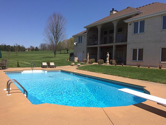 This stunning 5 bedroom, brick and stone, 6,600+ sq ft home is situated on 7.76 acres. Exterior highlights of the home include mature landscaping, and statues, new roof, an expansive deck that overlooks the luxurious in-ground pool with new pool liner, brick grill, and a detached garage. The interior was built to impress with custom stained glass windows, several fireplaces, one with a carved mantle, 6 crystal chandeliers, granite, updated fixtures and hardware, crown molding, hardwood floors and new carpet, and so much more! Pictures do not do this home justice. Schedule your showing today to fully appreciate the beauty this property has to offer any family!