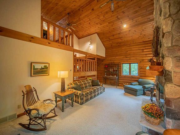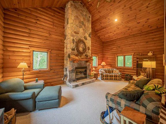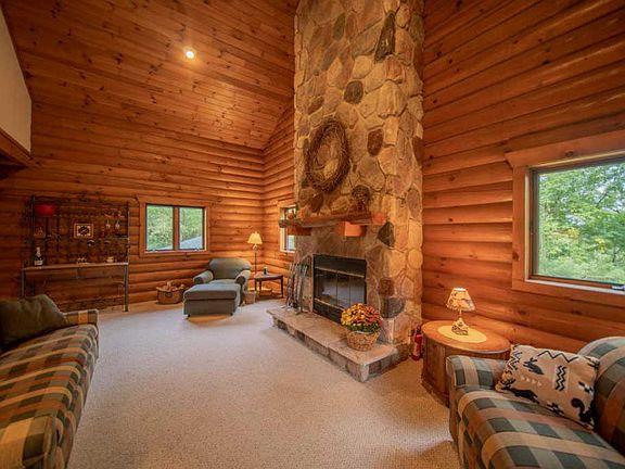 CRAFTSMANSHIP IS THE HALLMARK OF THIS AMISH BUILT LOG HOME. Escape to your own forest retreat tucked away on 7 acres just east of Stoughton. The great room's soaring ceiling emphasizes spaciousness as well as warmth from the impressive stone fireplace. The eat-in kitchen features wood floors, abundant counter space and the ability to "BBQ" year round on your indoor grill. The wood floors continue upstairs to your large master loft. Downstairs features a roomy rec room that could be converted to a 3rd bedroom if needed. New Roof, Gutters & LL Carpet ('19). Logs completely restored ('19). Easy access to Madison. Home Warranty Included.