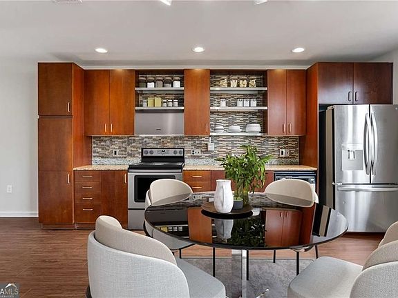 Experience the perfect blend of modern living and urban convenience at M West, a premier GATED community in Atlanta's sought-after Upper Westside. Enjoy direct access to the new Westside BeltLine extension, just steps from this stylish townhome featuring a private FENCED COURTYARD and FRESHLY PAINTED EXTERIOR. The open-concept main level boasts soaring two-story windows, NEW LVP flooring, and FRESH PAINT throughout. The sleek kitchen offers granite countertops, stainless steel appliances, and a modern glass tile backsplash. A striking floating staircase leads to the upper level, where the spacious primary suite includes an ensuite bath and large walk-in closet. A guest bedroom, additional bath, and laundry room complete the second floor. Community AMENITIES include a pool, clubhouse, fitness center, and dog park. Walk to some of Atlanta's best dining and entertainment-Bacchanalia, Star Provisions, Souper Jenny, Bone Garden Cantina, Top Golf, and Chattahoochee Food Works, all within a mile. Move-in ready and ideally located-this one has it all!