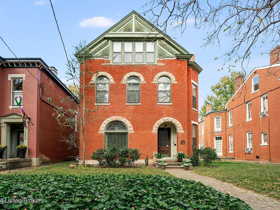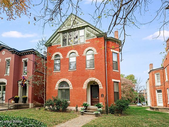 Welcome to 1342 S 2nd Street, a captivating residence nestled in the heart of historic Old Louisville. This exquisite three-story brick home exudes timeless charm and offers stunning curb appeal. As you step through the inviting foyer, you are greeted by an abundance of natural light, an elegant chandelier, and a decorative fireplace that sets the tone for this magnificent property. Original hardwood floors and lofty ceilings enhance the home's classic character throughout. The first floor boasts a formal dining room, highlighted by a beautiful stained glass window, and a spacious living room featuring a second fireplace. Both the living and dining areas are separated by original pocket doors, providing the flexibility to create a first-floor bedroom if desired. The expansive eat-in kitchen is a chef's dream, equipped with stainless steel appliances, granite countertops, a generous kitchen island, and ceramic tile flooring, along with a built-in desk area. Additionally, a convenient half bath offers potential for conversion into a full bath, and the laundry closet is thoughtfully situated on this level. Throughout the home, several exposed brick accent walls add to its unique character. On the second floor, you'll discover the primary bedroom, complete with a custom walk-in closet featuring built-ins, a decorative fireplace, a closet island, and a chandelier for a touch of luxury. The primary suite also includes a full bath with a jetted tub, and a second closet offers the potential for conversion into a fourth bathroom. This level is rounded out by two additional bedrooms and another full bath. The third floor presents an excellent opportunity for customization, allowing you to create additional living space or extra bedrooms tailored to your needs. Step outside to a spacious backyard featuring a large deck, a full wood privacy fence, and an oversized detached garage. This remarkable garage is extra tall and accommodates up to four cars, depending on size, while providing ample storage space. Don't miss your chance to own this enchanting Old Louisville home. Schedule your showing today!
