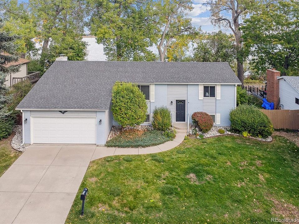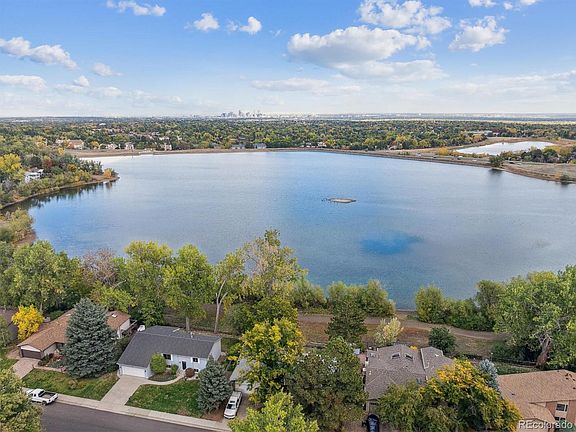 Wow Rare Lakefront property in Colorado! Fishing, walking path, huge trees! Colorado living at it's finest. Light and bright, unique open floor plan with big lake views! Same owner 47 years, original kitchen but updated Kitchen counters and sink. Windows and siding replaced about 20 years ago. Baths updated in last 15 years. No carpet, laminate floors throughout. Central air, sprinkler system, extra storage in custom garage attic.
