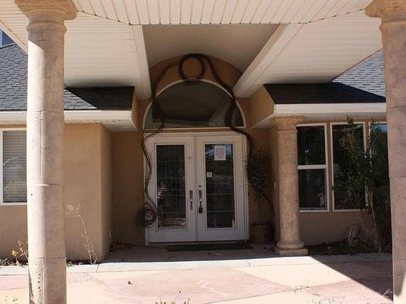 Elegantly designed home w/ beautiful panoramic views of mountains and valley. Sits on 3.11 w/animal rights. Large Master bedroom, with fireplace, walk-in closet, sliding doors into indoor Atrium/Pool. Perfect home for entertaining with an indoor pool, and is 11' deep, 50 ft, long w/diving deck off the Jacuzzi upper level, has BBQ Area & tropical plants. All bedrooms on the main level. Has heated Travertine Tile front of home & new carpet. Formal living room & formal dining room w/fixed table, built-in china cabinet(included). The kitchen has dining table area with bar, w/ built-in under bar seating, granite counter-tops, with family room wood burning fireplace. Downstairs w/Sports Court, Theater Room (wired), half bath, workshop.