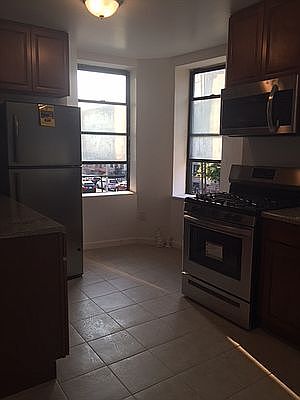 3 BR 1 bathroom apt for rent in Crown Heights near Schenectady Ave and St. Johns Place. Two minute walk to Utica Ave's 3-4 train lines, major bus routes. Apt features: all ceramic tile throughout, maple kitchen cabinets, stainless steel appliances, over the range microwave, Living room kitchen combo. Boasts medium/lg bedrooms with ample closet space. Laundromat around the corner. Only Hot water included. No pets, no smoking. 1 month's rent/1 month security, 1 year lease. Will require application, credit check and fee of $50 to run credit report, references
