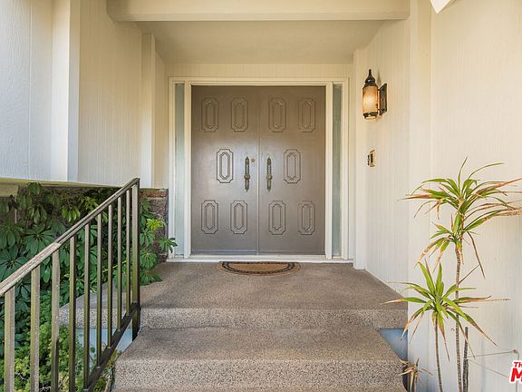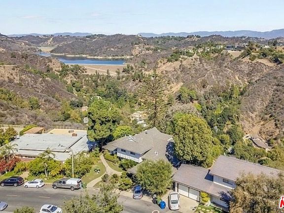 Welcome to this split-level Bel-Air home with 5 bedroom + 4 bath + den. Enter into the house, and find yourself in a vaulted, light-filled living room with floor to ceiling windows looking out to expansive views of the Stone Canyon Reservoir, surrounding hills and downtown L.A. The living room and dining room each have a natural stone fireplace and sliding glass doors that open onto a small upper terrace, perfect for enjoying the morning sunshine and canyon views with coffee or breakfast al fresco. A few steps away, a lawn spreads out with breathtaking views of the reservoir. The open kitchen features quartz counter tops and has direct access to the garage. Upstairs is the primary bedroom suite with reservoir view, walk-in closet and bathroom. On this same level there is another large bedroom with full bathroom. On the lower level, only a few steps below the main level, are three bedrooms and two bathrooms, as well as a large den with wet bar. Glass sliding doors in the den lead to the grassy and spacious backyard facing the canyon. Perfect for gathering with family and friends.