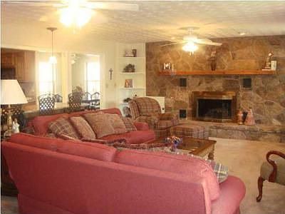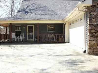 Lake home w/ 80ft of water frontage. Awesome boathouse w/ an electric lift and covered porch area, also an upper sun deck great for entertaining. Immaculate 5 bedroom, 3 1/2 bath, updated kitchen-granite countertops, stainless appliances, hardwood floors, neutral colors and carpet throughout, tile, heat pump on each level. The master bedroom, bath, family room w/ real stone gas log fireplace (propane tank for gas logs) that can also be used as wood burning, kitchen, dining room, powder room are all on the main level. Upstairs has two bedrooms and a spacious full bath. Lots of storage as well. The lower level features a den area w/ pool table and wet bar area. Also a second master suite w/ a full bath and a home gym. Lots of storage area too. The garage is oversized with a work area. The exterior features real stone and maintenance-free vinyl siding, new roof late 2010, newly refinished wrap around porch w/ beautiful views of the lake, even a commercial ice machine. Great for entertaining!! There is access from the upper porch to the lower level area and driveway also extends to the to the lower level. An awesome newly paved extra-wide walkway to the boathouse.
