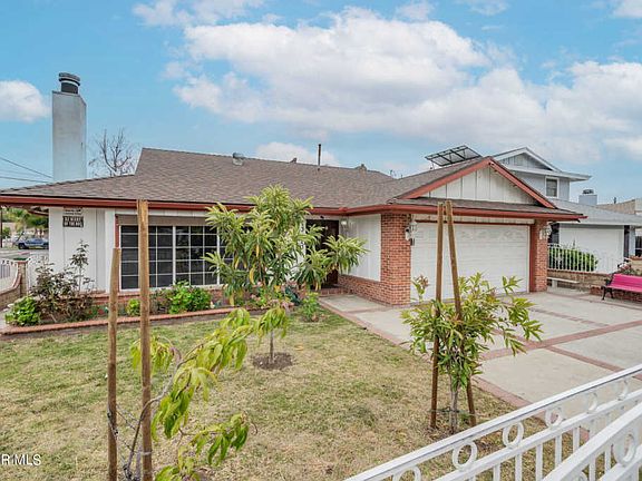 A Classic Ranch Residence with Private Live/Work Spaces.13420 Chase Street is a spacious ranch-style home brimming with work-from-home or multi-generation living possibilities. An automatic front gate secures the large front yard and converted garage. From the keypad locked front door, you enter an airy living room with recessed lighting and a gorgeous marble fireplace. The entire living and kitchen area is covered in clean, white tile. A large dining area lies right off of the beautifully updated kitchen and dark granite countertops accent the honey-colored wood cabinetry. The kitchen features premium appliances including a multi-burner gas stovetop. From the kitchen, walk into a laundry nook complete with loads of storage cabinets. The laundry room connects to a mini-suite: An added apartment with a living area, bedroom, and bathroom. Your parents, teenager, or college student will love their ''home-within-a-home'' and the extra privacy! Off of the dining area is a hallway entrance leading to three generously sized bedrooms, all covered in dark, high-quality wood laminate flooring with a modern shared bathroom. At the end of the hall is a larger master suite with a custom walk-in closet and bathroom.