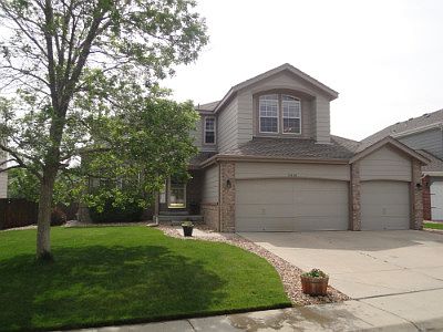 Spectacular home perfectly located on the Thorncreek Golf Course in the very popular and family friendly neighborhood of Hunters Glen. Here you can enjoy breathtaking mountain views, community pool, and excellent schools and close proximity to the Orchard Town Center, I-25 and so much more.The beautiful home shows like a model and is loaded with quality upgrades and finishes. Some of these features include a large eat-in gourmet kitchen with upgraded stainless steel appliances, slab granite counters, extended hardwood floors and upgraded lighting-Amazing! The beautifully situated family room has high ceilings, a cozy brick faced fireplace with wooden mantle, built-in shelves, and large windows that perfectly frame your extraordinary view of the large backyard and the third tee box of the golf course. The main floor also features a formal living room with a dramatic two story entry, a formal dining room, main floor study/bedroom, full bathroom, and convenient mud room laundry facility. You will love the views from master retreat and enjoy the luxurious 5 piece bath including a large oval tub, double vanity, over-sized shower enclosure, and huge walk-in closet. The basement has been professionally finished with a large recreation area, full bath and plenty of room for the home theater. Other features include: Central air conditioning, newer carpet, 3 car Garage and a custom doll house / shed in the backyard...the kids will love it.