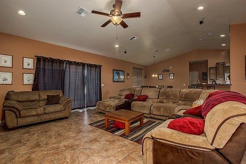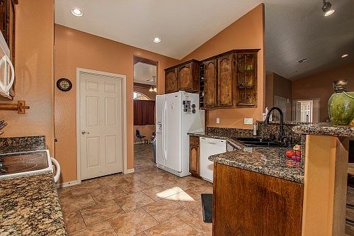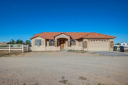 Beautiful custom home with 4 bedrooms and 2 baths. Kitchen offers upgraded cabinets, granite counters, pantry and breakfast bar. Large master suite. Master bath offers separate shower and tub plus double sinks. 4th bedroom could also be used for a den or office. Ceiling fans in all rooms. Upgraded tile laid in an offset pattern. Large extended patio in the back yard plus a concrete sitting area in the front. Block wall along back of property and split rail vinyl fencing around other 3 sides. Mountain views and city lights ! Acre next to the home also for sale under separate contract.