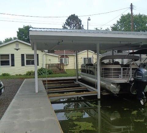 Located on a quiet, secluded, dead end channel, with 82 feet of seawall and only minutes to open water, this 1872 square foot, ranch home has space for everyone. The oversized family room has french doors at both ends of the room, one with a water view. The kitchen opens up to the dining room (currently being used as a sitting area) and has french doors out to the back deck area. The living rm (currently being used as a dining rm) has a wall of windows and a door out to the front deck, all overlooking the channel. With 3 bedrms and 2 updated, full baths, this can be the perfect lake home for visiting guests. The covered boat dock, with a lift, is located steps from the home and seller has paid for the 2018 rental. The home has lots of updates and has a maintenance free exterior. Home is located on quiet street with no thru traffic. By boat, you can be at many favorite lake restaurants, bars and other lake destinations. This waterfront property is a rare find and is priced to sell!