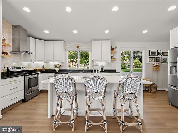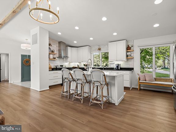 Tucked within the sought-after community of Allnutt Farms, this completely renovated all-brick rancher blends modern luxury with timeless charm on a sprawling 1.1-acre lot. From the moment you step onto the bluestone walkway leading to the double-door entry, it's clear no detail has been overlooked. Inside, the main living spaces have been completely transformed. Sunlight pours into the open-concept layout through expansive casement windows, illuminating the wide-plank luxury vinyl flooring and highlighting the home’s vaulted ceilings and striking 31-foot custom wood beam that adds architectural presence. A noise-reducing French door separates the main living areas from the bedroom wing, offering both quiet and privacy without interrupting the flow of the home. Designer light fixtures accent the space, while the former sunken family room has been elevated for a seamless transition into the adjacent dining and living areas and the spectacular kitchen beyond. This kitchen is a showpiece. Custom-designed with both elegance and utility in mind, it features a 91-inch white quartz island with a chef’s sink and an array of integrated accessories, including a mahogany cutting board, stainless steel colander, drying rack, and more. White cabinetry reaches the ceiling, paired with a glossy design-inspired backsplash that also rises to the ceiling for a dramatic effect. Stainless steel appliances include a high-powered range hood and a new refrigerator, while under-cabinet lighting, designer sconces, custom shelves, and smart Alexa-compatible shades add high-tech functionality. A shiplap accent wall with hooks adds charm, and the French door provides direct access to the basement. The adjacent family room is anchored by a brick wood-burning fireplace, complete with a custom wood mantel and flanked by an atrium door and stationary glass panels that flood the space with natural light. Down the hall, decorative ceiling beams and high-end light fixtures add architectural interest and a touch of elegance. The stylish laundry room offers a custom-built platform for the washer and dryer, surrounded by cabinetry to the ceiling. A folding station and a 6.5-foot marble countertop with custom angled legs maximize both utility and floor space. At the end of the hall, the primary bedroom offers a peaceful retreat with a wall of windows overlooking the backyard and filling the room with serene natural light. The en-suite bath includes a double vanity with a white quartz counter, designer Kohler faucets, mirrors, dual closets, and a glass and steel barn door for a modern finish. Two additional bedrooms share an updated full bath, complete with a 63-inch quartz-topped vanity, double sinks, custom built-in cabinetry with an additional quartz surface, and Kohler fixtures throughout. The finished lower level includes a large recreation room, perfect for lounging or entertaining, and an unfinished space currently used as a home gym. Outdoors, enjoy the expansive patio overlooking mature trees and lush landscaping. A fire pit area is perfect for evening gatherings, while fresh exterior paint, six modern light fixtures, and a smart lock system elevate curb appeal. The oversized garage offers convenience with a new refrigerator and garage door openers. For pet owners, an invisible fence encloses the entire property, offering safety and freedom without disrupting the view. Throughout the home, upgrades include fresh paint on ceilings, walls, and baseboards, all-new light fixtures and switches, solid wood interior doors with designer hardware, new shoe molding, and modern floor registers. A Honda generator is included for year-round peace of mind. This home is not just renovated, it’s redefined.