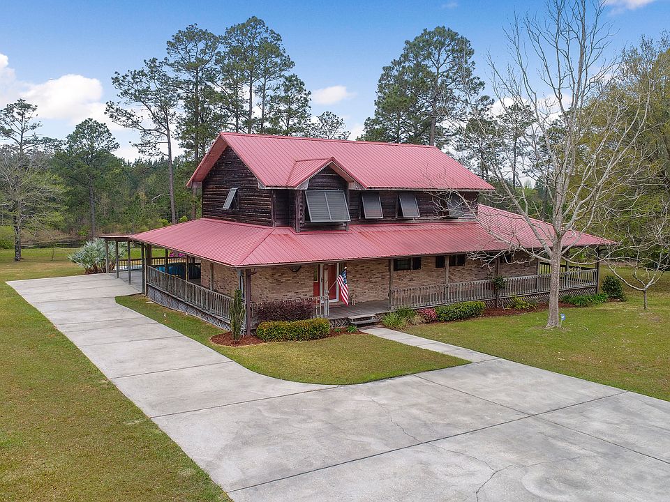 Situated on approx 8 acres, this home is country living at its finest. Enjoy a stunning water view from your poolside patio or a day soaking up the sun on your pool deck. Spacious kitchen will make any home chef happy. The island serves as great prep area with a conveniently located vegetable sink and a wine cooler to keep you company. Lots of great spaces both inside and out. Your master suite is the perfect escape at the end of a long day with decorative tray ceilings, large bath, walk-in shower with bench, and his and her walk-in closets. Everyone will have a place with two upstairs bedrooms, each with private bathrooms. Enjoy cool breezes and a glass of lemonade from you wrap around porch or cool off on a hot day in your in-ground pool.