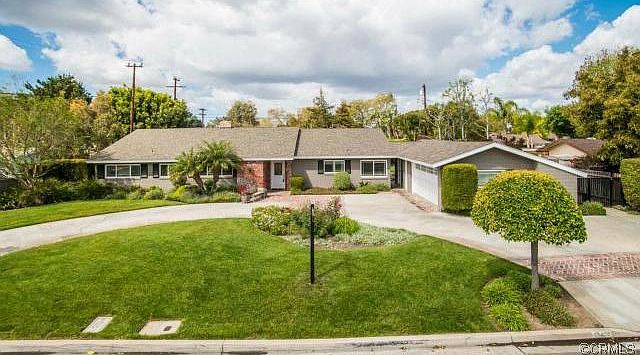 Great single story home situated in the interior of St. Hubert's Woods, a much sought after North Tustin neighborhood. This lovely home offers four spacious bedrooms and three baths, plus a separate office/workroom/storage room off the garage. As you round the circular driveway and enter this home you will be delighted with the home's custom amenities. The kitchen and bathrooms have all been updated. The large family room with stone fireplace and vaulted ceilings is the heart of the home and the perfect place for your family and friends to join, and opens to the adjacent formal dining room and spacious kitchen. The formal living room opens to the private back courtyard, a great place to host your outdoor meals. You'll be sure to enjoy this private backyard, where you can find a hammock for taking afternoon naps, or just admire the large grassy area where kids can play. A separate dog run can also be found in the backyard. The two car garage features the separate room, plus extra storage in front of the two car parking spaces. The master suite offers you a walk in closet and updated bathroom, and doors to the exterior patio. This home is truly a gem within this neighborhood, one you won't want to miss.