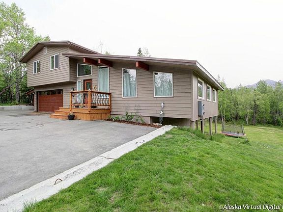 Beautiful remodeled home off Dearmoun road in a quiet culdesac. The main floor is set-up for entertaining with a kitchen that's open to the living room and dining area. Seating for 7 at the island bar. The family room downstairs is a great place for some peace and quiet. There is also a detached heated single car 351 sq/ft garage / shop with a loft for storage. All on 1.25+- acres. Newly remodeled with all new windows, doors, trim, floor coverings, paint, siding, appliances, kitchen cabinets, granite countertops, etc... The house has a 1 bedroom Mother-In-Law apartment with its own entrance and stainless steel appliances. The Mother in Law apartment should rent for around $900 if you want, or just use it for another bedroom or office. Metal Roof. New asphalt driveway. Generator plug-in to main electrical panel for backup power. Lots of parking for boats, snowmachines and trailers. Let the kids play on the football field, zip-line, trampoline and roast marshmallows at the firepit. Great Schools...South High, Goldenview Junior High, Bear Valley Elementary. Great neighbors too. Views of the Chugach Range from the kitchen and back deck. Call 360-7854 to view. No realtors please. Please have a pre-qualification letter from your lender. Thanks! Zoned for Horses per MOA. Buyer to verify all information. If you love the house, make me an offer I cant refuse. Without a realtor I have a little wiggle room to negotiate.