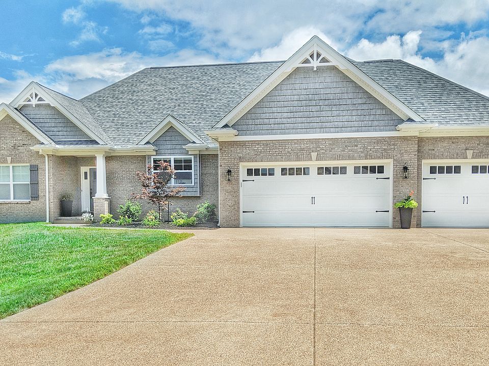 NEW GORGEOUS HOME!!! Looking to sell quickly! Completed February 2018. 4-5 bedrooms, 3.5 bath, open concept kitchen, dining, family room with wide plank hardwood floors. Gourmet kitchen with quartz countertops, marble backsplash, hickory wood island with double-sided storage, and walk-in pantry. All new stainless appliances including smart refrigerator and convection wall oven/microwave combo all with 5 year warranty to be transferred to buyers. Family room with tray ceiling and custom built-in entertainment center. Master retreat with barn door, tiled walk-in shower, dual vanity, quartz countertops, walk-in closet. Mudroom with custom built-in lockers and desk, laundry room with cabinets and utility sink. Large bonus room upstairs. 3 car garage, FINISHED BASEMENT with bedroom, full bath, wet bar/kitchenette, unfinished storage and rec room. 9ft ceilings throughout, even in basement. Custom blinds throughout. Energy efficient tankless water heater and 2 stage/2 zone HVAC with Nest thermostat. All kitchen appliances stay along with refrigerator and microwave in basement kitchenette. So many cabinets and so much storage space, you are sure to have a spot for everything. Covered patio and additional concrete pad. All a lot in the back of the desirable Carrington Meadows subdivision! Call to schedule a showing!