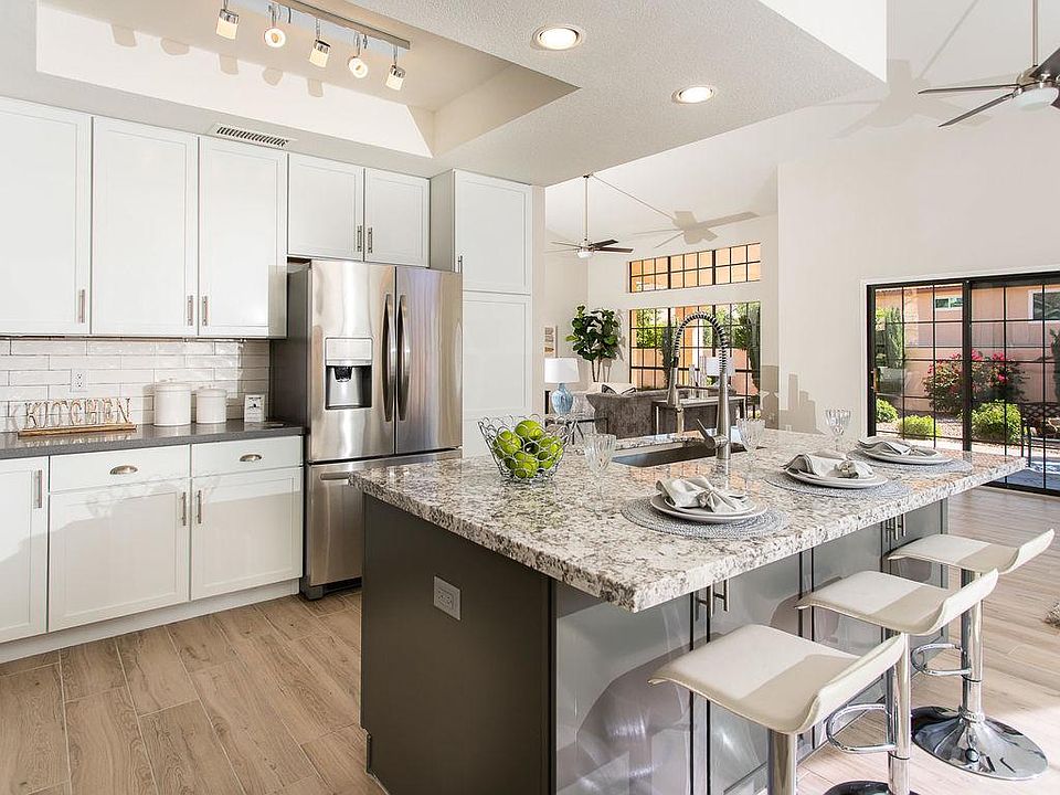 This professionally remodeled home is gorgeous & one of a kind! In a quiet neighborhood that includes Scottsdale's coveted Cheyenne Traditional School and gorgeous city parks, the home features a custom open floor-plan that your friends will envy! Step inside & enjoy stunning wood-look tiled floors, a completely redesigned kitchen featuring new cabinets w/sparkling granite & quartz counters & new SS appliances! The new great room offers tons of versatile space to relax and entertain, & the dining room is perfect for any occasion. Outside enjoy a huge covered patio & newly landscaped yard w/citrus trees that is amazing year round! Back inside you'll enjoy a remodeled master bdrm & bath w/ relaxing soaking tub w/new vanities & granite counters, and a new tiled shower that rivals