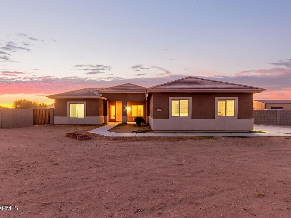 Experience serene ranch living with all the modern conveniences in this stunning 1-acre horse property! Enclosed by a private block fence and featuring a spacious 3-car garage. Interior greets you with tile flooring throughout the main areas and soft carpeting in the bedrooms. Open-concept kitchen, with a large island and breakfast bar, granite countertops, recessed lighting, stylish pendant lights, stainless steel appliances, and a spacious pantry. Retreat to the master suite, which includes a private door to the backyard and ensuite bathroom with double sinks, a separate tub/shower, and generous walk-in closet. Out back, enjoy an extended patio perfect for entertaining or relaxing while taking in the scenic views. RV gate provides easy access and plenty of space to store all your toys!