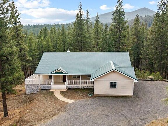 YOUR VERY OWN TREEHOUSE!! Brand new Custom Home, 1920 sf with 3 BR, 2B, large laundry room, attached 2 car garage ALL on 6.29 acres of Pine Trees. Borders USFS forest for great recreation and privacy. Special features of this home: slate tile entry with ledger stone wall, hardwood floors in the dining, living rooms & kitchen. Open floor plan for great entertaining space. Large French doors from living room open onto the large covered deck-forest type view and Saddle Mountain. The Primary bedroom also has French doors onto the covered deck, recessed lighting. Attached bathroom with travertine stone floors, jacuzzi tub, custom rustic alderwood cabinets & walk in closet. Upgraded carpet in all 3 bedrooms, hall bathroom with travertine stone walls and floor. Gourmet kitchen with all new appliances & solid oak cabinets. Lots of storage in the large 8 ft. granite island and counters, recessed lighting and walk in pantry. Large laundry room with enough room for office space,crafts.