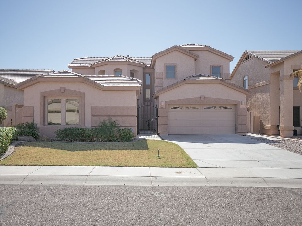 Come relax by the pool or under the covered patio at this beautiful Citrus Court home! You will see an eat-in kitchen with a breakfast bar and island which opens to the formal dining room and leads to the living room. Pass through the dramatic high ceilings in the entryway and up the stairs to the Master bedroom with a walk-in closet and double doors. In addition, the en-suite Master bathroom features a separate shower/tub, dual sinks and a private toilet room. Perks include four-bedrooms, four-bathrooms, an indoor laundry room with a utility sink and three-car parking in a split garage! Close to golf, entertainment and Luke Air Force Base! Home comes with a 30-day satisfaction guarantee, 180-point inspection and one-year warranty. Terms & conditions apply. This home will be eligible for FHA financing on January 1, 2017. Open House: Mon-Sun, 6am-9pm
