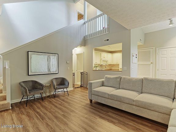 Offering a fabulous 2nd floor end-unit located in desirable Prospect and in the award-winning Oldham County School District. Enjoy the open floor plan with vaulted ceilings and an abundance of natural light. The great room has new LVP wood flooring and fresh paint. The bright and airy great room opens to the full kitchen. The kitchen has a new subway tile backsplash as updated decor. The spacious primary bedroom has new carpet, walk-in closet and full bathroom that is conveniently located on the main floor. Nestled upstairs is another bedroom, walk-in closet and full bath. There is also a large loft area that is perfect for an office or cozy reading area. This unit comes with an outside storage closet, 1 car port, and plenty of off street parking. The balcony and entry stairs have new maintenance free decking. HOA includes grounds keeping, sewer, snow removal, trash, water, and master insurance for maintenance free living.