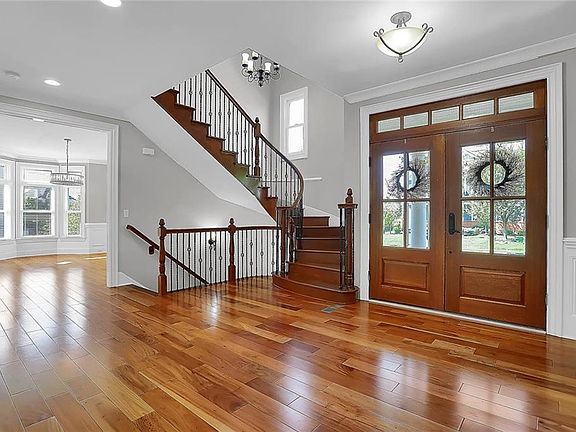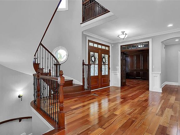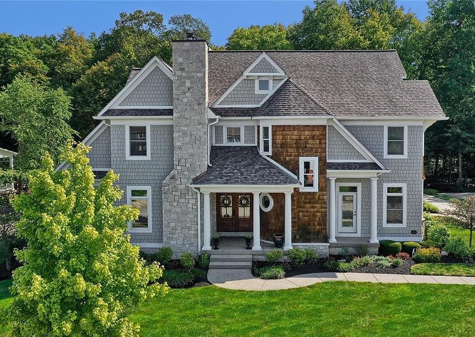 Gorgeous, Inviting Nantucket Style Home on a private wooded lot. Custom features throughout, this Luxurious home has a Grand entry w/ curved staircase & arched doorways, Opulent Two story Great Rm w/ wall of windows & floor to ceiling stone FP. Gourmet Kitchen w/ large center island, SS appliances, lots of storage & eat in area flows into 2 story Great Rm. Master Suite w/ spa like BA & ample closet. LL w/ theater, large wet bar, wine area & rec area. Serene, private outdoor living space w/ patio, fire pit & yard w/ views of mature trees.
