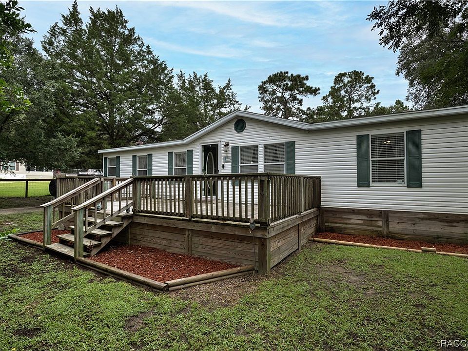 Welcome to your country dream home, perfectly settled on 1.16 acres. This is the definition of country living. This one-of-a-kind property, zoned A1, features a pristine mobile home, 2 spacious barns and a shed. One of the barns has been converted into a recreation area with its own built-in bar with plenty of space for entertaining. The home boasts many upgraded features including newer flooring, appliances, and fixtures. This home has been meticulously cared for and it shows with the top to bottom cleanliness. The primary bedroom has an ensuite spacious bathroom and a walk-in closet. This split floor plan home has two guest bedrooms and a guest bathroom on the opposite side of the home. Heading towards the back of the home you will find an additional living room and an office space overlooking the huge backyard that extends even further beyond the fence. This completely fenced-in property offers exceptional opportunities for any homeowner. Only 15 minutes away from Rainbow Springs and the World Equestrian Center. Don't miss your chance to own this gorgeous property.