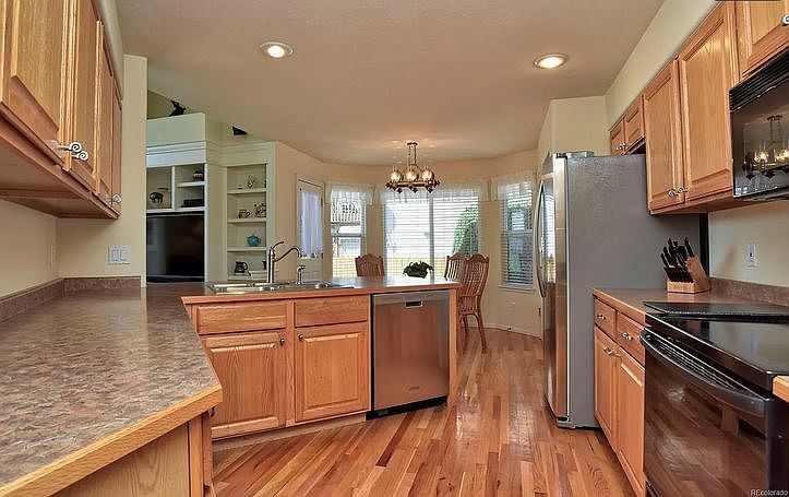 Stunning two-story home with mountain views that backs to a golf course! This beautiful property features an open floor plan with a vaulted entry, hardwood floors, and formal living and dining rooms perfect for entertaining. Highlights include a two-story great room with built-ins and a gas fireplace, opening up to the kitchen with a pantry, breakfast bar, and sunny eating space. The main level master bedroom offers a cozy nook, a private 5-piece bathroom, and a walk-in closet. Upstairs, you'll find a spacious bedroom or study with double doors, an additional bedroom, and a full bathroom. The unfinished basement is ready for expansion and your personal touch. Enjoy relaxing or entertaining in the backyard with mountain views, an awning, and a spacious stamped concrete patio. The community offers a pool and tennis courts for summer fun. Located in the award-winning Adams 12 Five Star School District, with easy access to I-25 for quick commutes to Boulder or Downtown Denver
