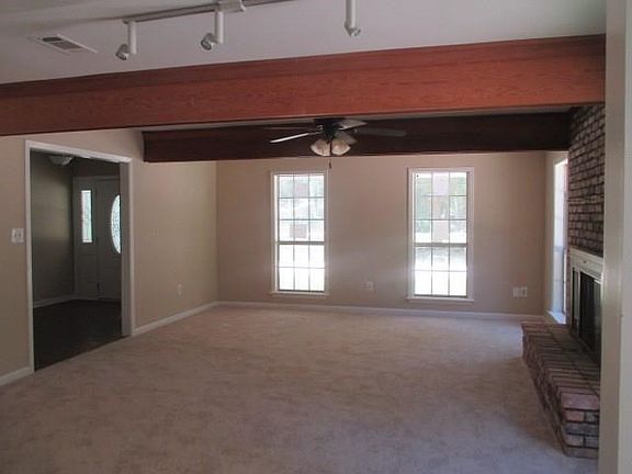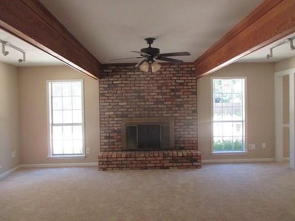 Come see this 2 story home with 2 acres, circle drive, new sewage system, pond access & lots of outside covered space for parties. The back patio wraps around back, connecting to side double carport with several exterior doors. The main bedroom is downstairs with 2nd bedroom, upstairs has 2 bedrooms, 1 bath. The kitchen has new cabinets, stainless steel appliances, granite counter tops, same granite in baths. There is new flooring on lower level and house is painted throughout. Easy access to 2 Interstates.