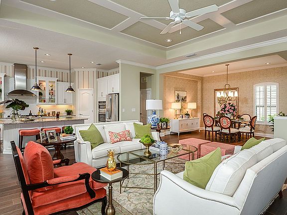 *Base price does not include the homesite premium or design options.*Sanibel features a generously-sized open living area at its heart, with an island kitchen with walk-in pantry, breakfast nook, and family room, which has views into the separate dining room. The master suite spans one side of the home and includes a large master bedroom with coffered ceiling, two walk-in closets and spacious master bath with two sink vanities, oval freestanding tub, walk-in shower, and private water closet. The Sanibel also includes two additional bedrooms and a den. Options include a club room or fourth bedroom in lieu of the den.