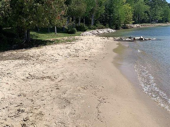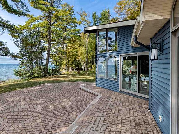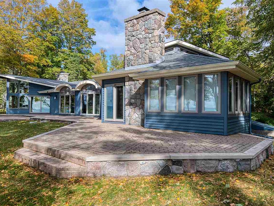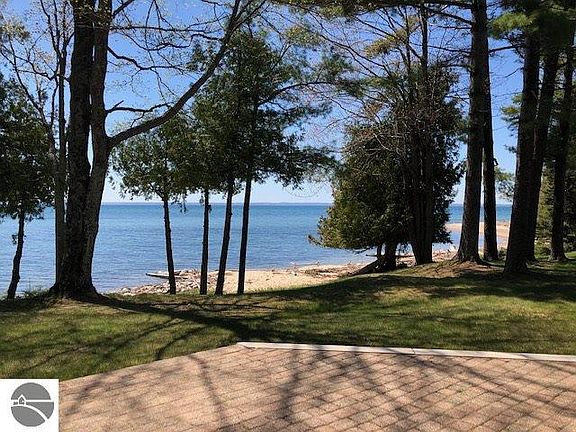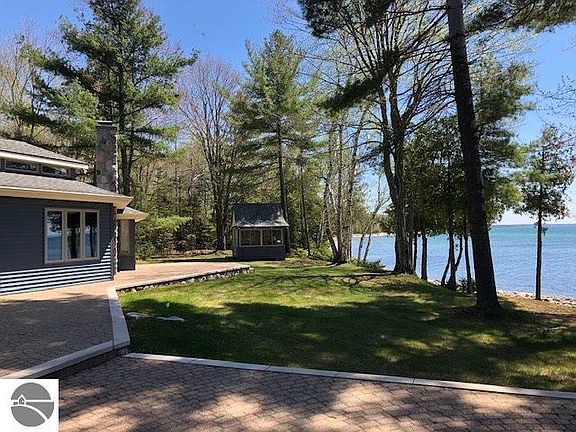 Absolutely stunning water views from this sprawling 3,100 +/- sq. ft. one-story home. This is the epitome of up north living - private wooded waterfront property with meandering stream on the south end. Property consists of 3 lots with 320 feet of private Lake Michigan water frontage in Timberlane Terrace subdivision. Triple pane Pella windows with multiple sliding glass doors encompass the majority of the lake side allowing for vast water views. Cozy up to 1 of the 3 split stone fireplaces. Patio with brick pavers stretches across the whole west side of the home. Wine cellar to keep your favorite wine for enjoying in the adorable outbuilding near the water's edge. 4 car garage also has an art studio and heated workshop. This one-owner home has been maintained with great care.