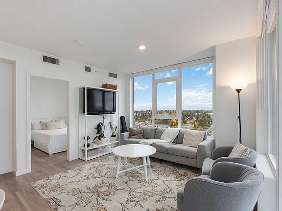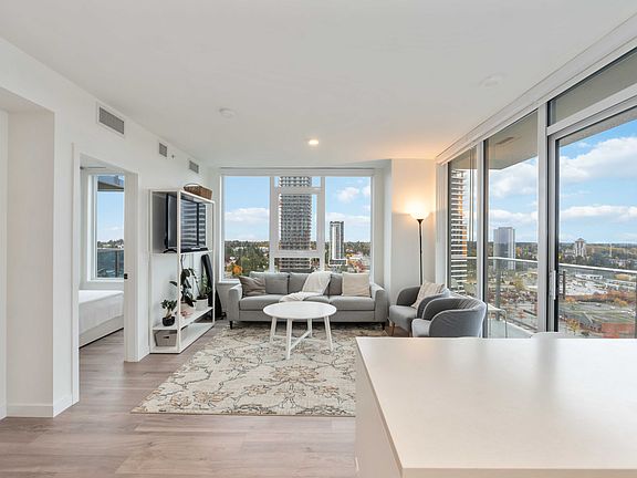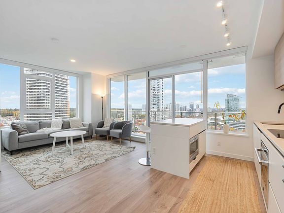 Available immediately at University District, 13428 105 Ave, Surrey, this modern 797 sq ft unfurnished 2 bedroom, 2 bathroom condo offers open concept living with floor-to-ceiling windows, a private balcony with panoramic city views, a sleek kitchen with stainless steel appliances and an extendable dining island, in-suite laundry, laminate flooring, and a spacious primary bedroom with ensuite. The building features a secure lobby with concierge, fitness centre, resident lounge, and underground parking, all in a prime Surrey Central location just steps from SkyTrain, SFU Surrey, Kwantlen Polytechnic University, Central City Mall, T&T, Walmart, Save-On-Foods, the public library, and Civic Plaza, with quick access to Highway 1 and King George Boulevard.
