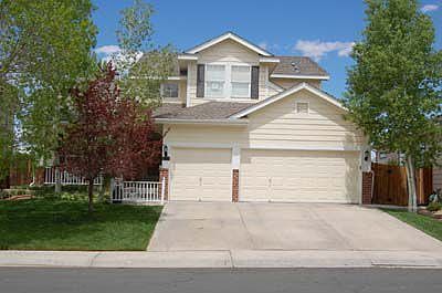 Welcome home to The Greens at Hunters Glen. This beautiful home sits on the tee-off to hole 3 at Thorncreek Golf Course! Detailed touches add class to this stunning 3 bed+study-3 bath house. As you enter, the formal living room boasts grand vaulted ceilings that draw your eye upward to the attractive crown molding above. Columns divide the living room from the formal dining room separating the two distinct spaces yet creating an open feel. The family room features a gas-log fireplace with gorgeous slate tile surround. Custom built-ins flank both sides of the exquisite fireplace/entertainment center. The spacious eat-in kitchen is a chef’s dream. Updated in 2007, this kitchen features granite countertops, under cabinet lighting and a ceramic farmer’s sink. A double convection oven, 6 burner gas range, and side-by-side refrigerator/freezer are just a few of the KitchenAid® stainless steel appliances included in this immaculate space. The center island is ideal for a breakfast bar and features a vegetable sink with disposal. The deck outside the kitchen is perfect for outdoor entertaining and offers eye-catching views of the Rocky Mountains while overlooking Thorncreek golf course. Upstairs the master retreat boasts a newly remodeled 5 piece master bath with slate tile and a spacious walk-in closet. Enjoy additional views off of the private master bedroom deck. The lower level features an included hot tub, dog run, and utility shed for additional storage. The walk-out basement leaves much to the imagination and is ready for future expansion. Tennis courts and a pool are just some of the amenities offered in this community.