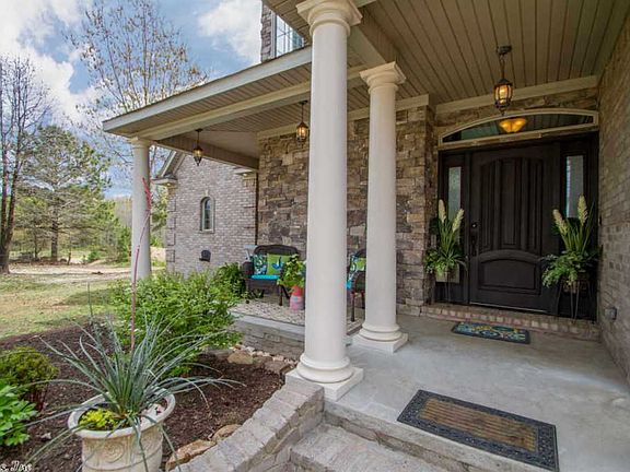Gorgeous French Country custom home on 3 acres. Hardwood floors, granite counters, cathedral ceilings, lrg walk-in pantry; Separate master w/ beautiful tub & walk-in shower; separate guest bedroom down w/ private bath, add'l 1/2 bath down for visitors; 2 bedrooms and 1 1/2 baths upstairs along with a huge game/media room with wet bar. Built in safe; storm shelter under house, lg deck in back & plenty of room for a pool; 3 car garage, open single horse barn on back of property; See agent remarks.