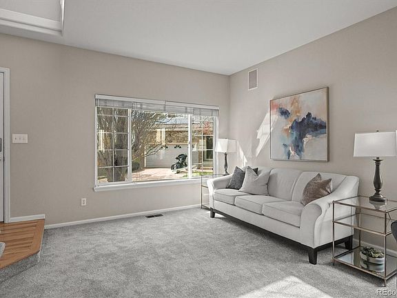 Low maintenance living on a cul-de-sac with lots of natural in Highlands Ranch! 3 bedrooms, 3 Bathrooms, Loft/Family room, private yard with new carpet! The main floor welcomes you with a living room, 2-sided fireplace, dining room, kitchen with stainless steel appliances, new oven, powder bathroom, laundry room. Upstairs is the primary suite with mountain views, large walk-in closet, ceiling fan, 4-piece bathroom with dual vanities, large garden tub, and new LVP flooring. There are 2 additional bedrooms, a full bathroom, and loft/family room. There is a large sliding glass door off the dining room that leads to the large deck, xeriscaped yard, and paver pathway. Low taxes! Enjoy care-free living in the winter, the HOA takes care of the snow on the driveways. Walk to Eldorado Elementary, close to Ranch View Middle School, and ThunderRidge High School. Close to Central Park, Town Center, UC Health, Children’s Hospital, shopping, dining, and amazing trails. Enjoy 4 Highlands Ranch Rec Centers featuring pools, fitness centers, classes, camps, tennis, pickle ball courts, and more! Don’t miss the chance to make this your new home!