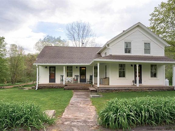 Cradled in a quiet sweeping valley and surrounded by mountains, where you can step back in time. Circa 1860 vintage farmhouse has been authentically and tastefully restored inside and out. Harmonious in style and setting with all improvements historically appropriate. 3 bedrooms (1 on first floor) and an art studio which can be used as a fourth. 2 Full bathrooms include clawfoot tub, wooden wainscot & European wallcoverings. Cozy living room with Vermont castings wood stove. Original refinished wide board pine and oak floors. Formal dining room invites dinner parties and an adorable kitchen. Classic covered porch where you can relax and listen to the stream. Restoration work completed in the past 2 years with closed C/O. Central heat & A/C via electric heat pump w/ air exchanger & humidifier. Backup electric wall mounted heaters in bathrooms. On-demand propane hot water and kitchen range. All new electric wiring and plumbing throughout. Addition insulated 633 Sq. Ft on the second floor with washer and dryer. Desirable Halcottsville might be tiny but it's mighty! Head down to nearby lake Wawaka where you can kayak or bike the loop, hop on the tourist train or shop at the Pakataken Round Barn farmer's market. Travel 10 minutes further to Roxbury and Margaretville for restaurants and shopping. For sports enthusiasts there is the Pepacton Reservoir's boating and fishing opportunities, Plattekill and Belleayre ski areas and an abundance of hiking within the Catskill Park. As place to relax and restore without distractions. No worries if you have to work there is high-speed internet. Move-in ready and easy to show.