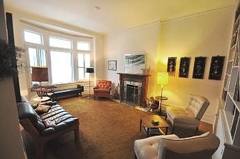 A charming vintage home across from the park in South Kenwood with four bedrooms and two full/two half baths. Large kitchen, separate dining room and inviting living room with wood-burning fireplace. En suite master bedroom and 2 more bedrooms on the second floor; a lovely 4th bedroom on the third floor. Rear porch leads to fenced yard and one-car garage. 7-year old flat roof. Central A/C. Roomy basement with 1/2 bath.