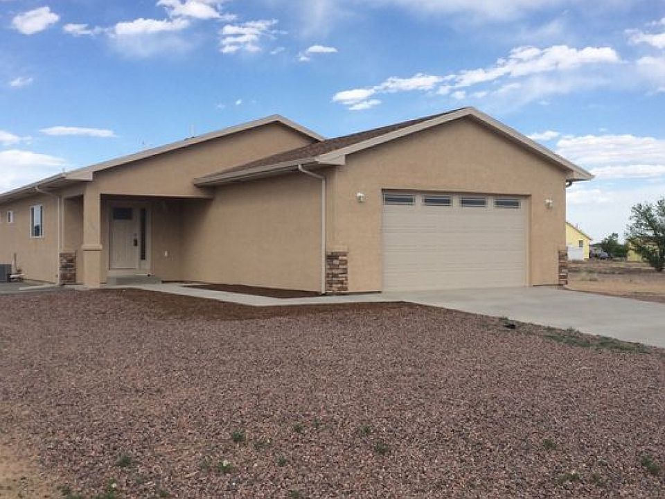 Beautiful new ranch -- Must see; bigger than it looks.. 3376 total sq ft. 1688 sq ft main level, 1688 sq ft basement. Corner lot, a full block, with entrance available to either street. $1000.00 allowance at closing for additional landscaping. Modern open design kitchen/dining/living room with oversized bedrooms. Large Laundry room. Walk in closets. Tiled bathrooms. One patio on the side and another small walkout area off the master bedroom. Full basement has 9 foot ceilings with a finished 16 X 20 family room. Plus an additional egress window for possible 4th bedroom. Plumbed for 3rd bathroom. Sprinkler system downstairs. Ample windows fill the home with natural light and the double pane windows and extra insulation keep this home extra quiet and warm in the winter and cool in the summer. Over one acre with views of the mountains. Located in highly desirable Pueblo West. Location, location, drive- less than 40 min from Colorado Springs, 12 min from Pueblo Mall. Call today for your private showing. Please click on the Virtual Tour for more photos and an important message.