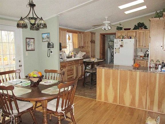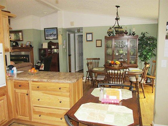 You would not know this is a mobile home. Sheet rocked walls, oak hw flooring, 3/4" subfloor under vinyl, hickory kit cabinets, dbl pane tilt in windows are just some of the extras the owners have put into this home on over 14 acres. Fruit trees, flowering trees and bushes. Sits back off of the road, this home provides privacy without seclusion. The large wired shop building could be used for shop, storage or perhaps horses. There is a fenced dog lot. A lot of the yard is fenced. Worth every penny. atc:da