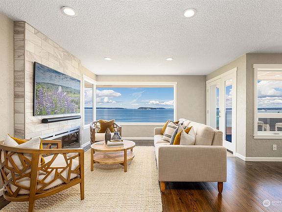 Panoramic and completely unobstructed Puget Sound views are the marquee of this truly special home, and the proximity to marine life is an immediate delight to the senses. Thoughtfully renovated from start to finish, the entire property lives luxe and large. An expansive Chef's kitchen & living area invite you right onto the huge feature decks, ideal for year round entertainment & watching the ever-changing sunsets. The primary suite includes a bay of built in closets and a just-renovated, designer bath. Downstairs is a sound-facing rec room with a stunning custom sliding door to outside, PLUS a separate den. Don't miss the 750sf garage w/car charger. Near the bustling Everett Marina, Paine Field, & commuting distance to Seattle & Bellevue.