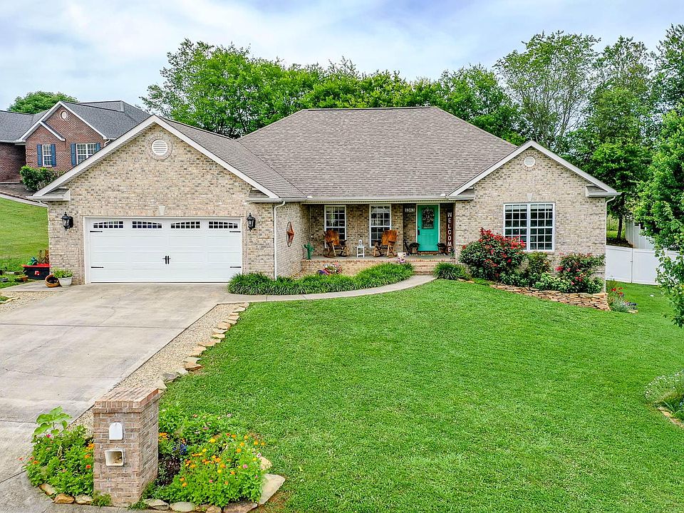 One level living in this 4 bdrm/2bath Brick home in the perfect neighborhood! A super functional kitchen offers granite counters and farm sink. The owners suite is separated from the other bedrooms & offers a walk in closet. Ensuite bath includes separate walk-in shower & jacuzzi tub for nightly soaks. Vinyl 5 in plank flooring thru out. No carpet here! Formal dining room, Newer appliances in kitchen. Washer,dryer & fridge included! Natural gas fireplace, new garage door. Outside is just as impressive w/ a large fenced back yard, your very own basketball court, playset, covered patio plus a firepit for ultimate marshmellow roasting! Brand new gas heat HVAC system! Raised veggie garden. Located in a great school district, close to downtown, Maryville College, hospital, and the Smokies!