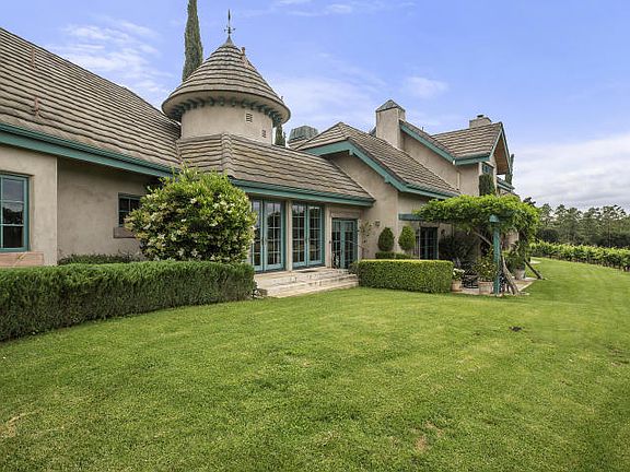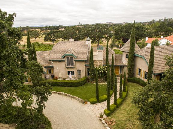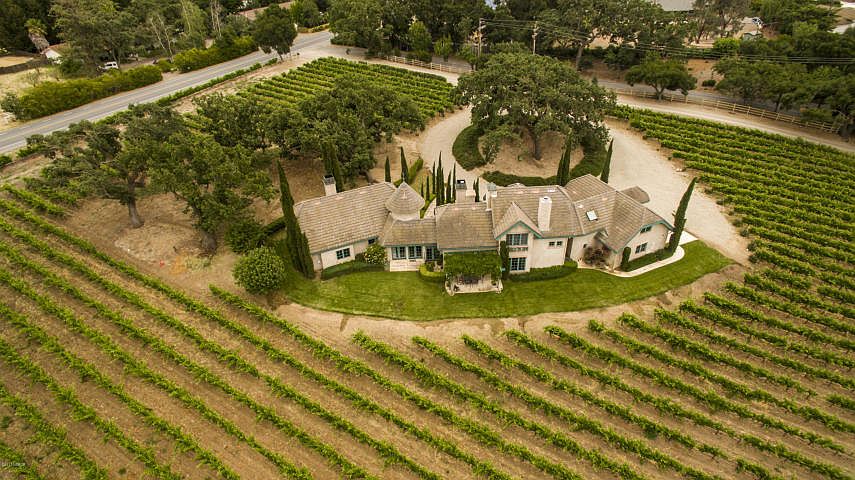 Make owning your own vineyard a reality! Wine Country Dreams come true at Starfire Vineyards in Santa Ynez. This magical European Chateau-style home is being offered furnished, move-in ready for you and your guests to enjoy peaceful weekend getaways or relax fulltime. Situated among beautiful horse farms and neighboring vineyards, this approximately 3,100+/- square home sits nestled in Century old oak trees surrounded by Syrah vines, on 4.7+/- gentle acres. Commanding fireplace, vaulted wood-beamed ceilings and tall windows make the formal living room dramatic yet inviting and warm. The open concept kitchen and dining area feature a cozy corner fireplace and large picture windows overlooking your private vineyard and the stunning mountains in the distance.