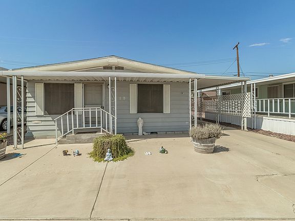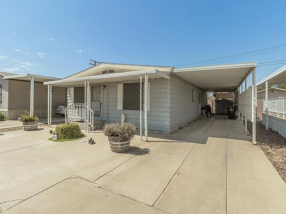 Move in ready and well maintained double-wide located in the established Mission Bell Mobile Home Park for 55 and over. This home includes a spacious floor plan that maximizes space. With 2 bedrooms and 2 bathrooms, you get a true master with a master suite. New laminate flooring runs throughout the main areas with the bedrooms being carpeted. The kitchen counters have been upgraded as well as a stainless steel cooktop, new refrigerator and has pristine white cabinets that offer plenty of storage. The walls in the living room have new plaster and the electrical outlets have been replaced throughout the home. Laundry closet is located inside the home next to the kitchen for ease of use. The home also includes a bath tub with a lowered access area. The mobile home park includes access to the community pool and clubhouse.